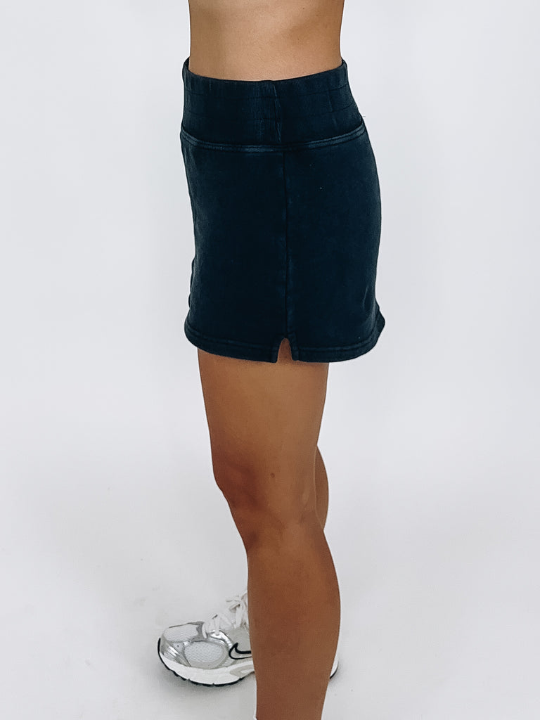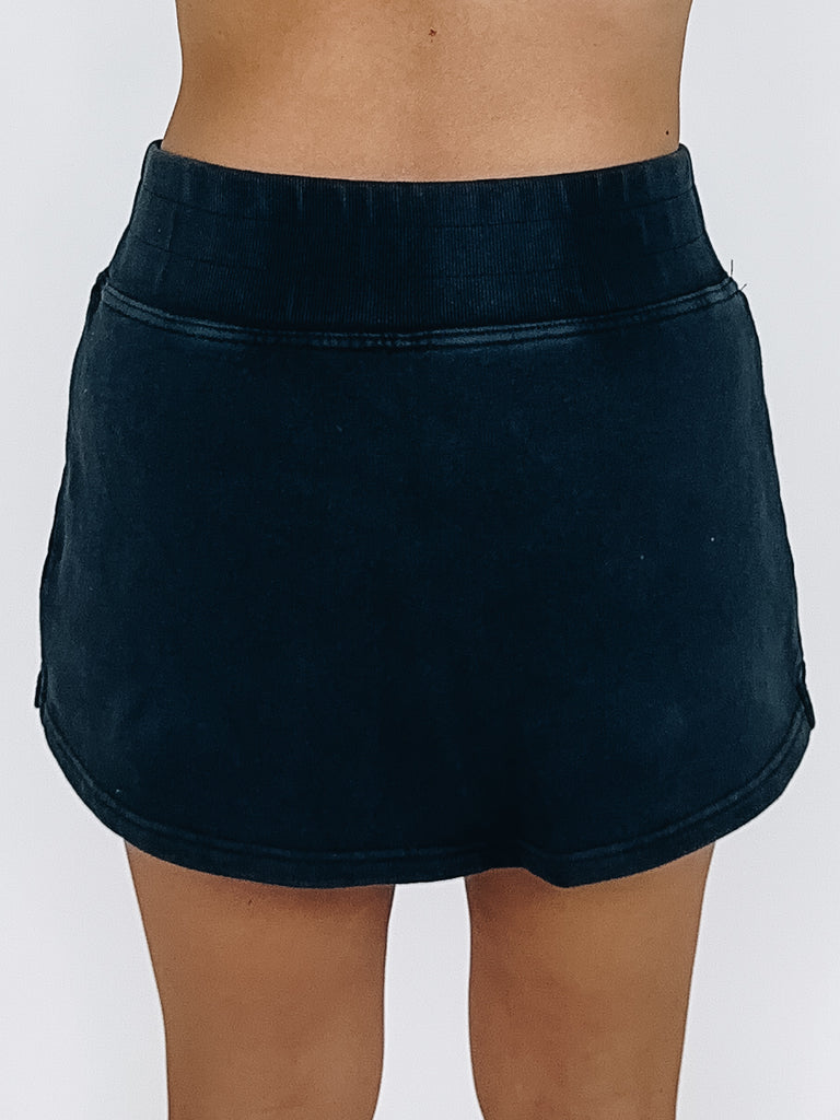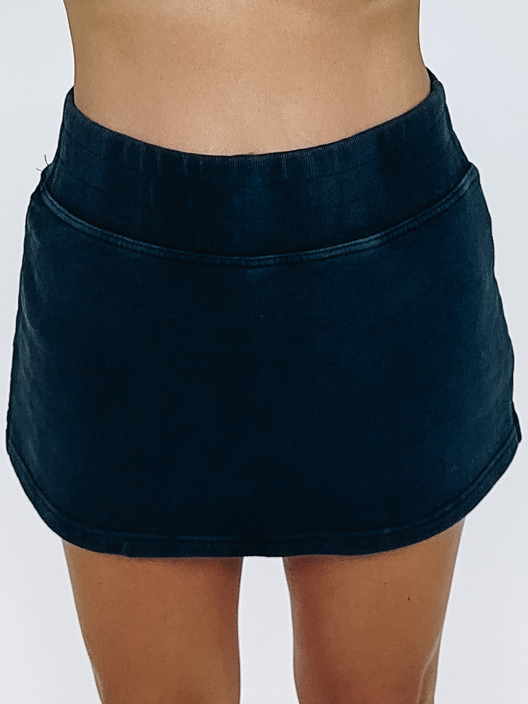 The Davis Skort is a deep navy skort. They feature a mid rise, athletic fit skirt with soft cotton biker shorts underneath. Pairs well with a tee and flat sandals or tennis shoes! We love it paired with our Davis Jacket. Runs small size up.