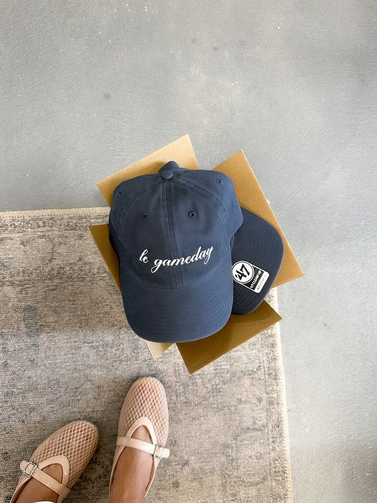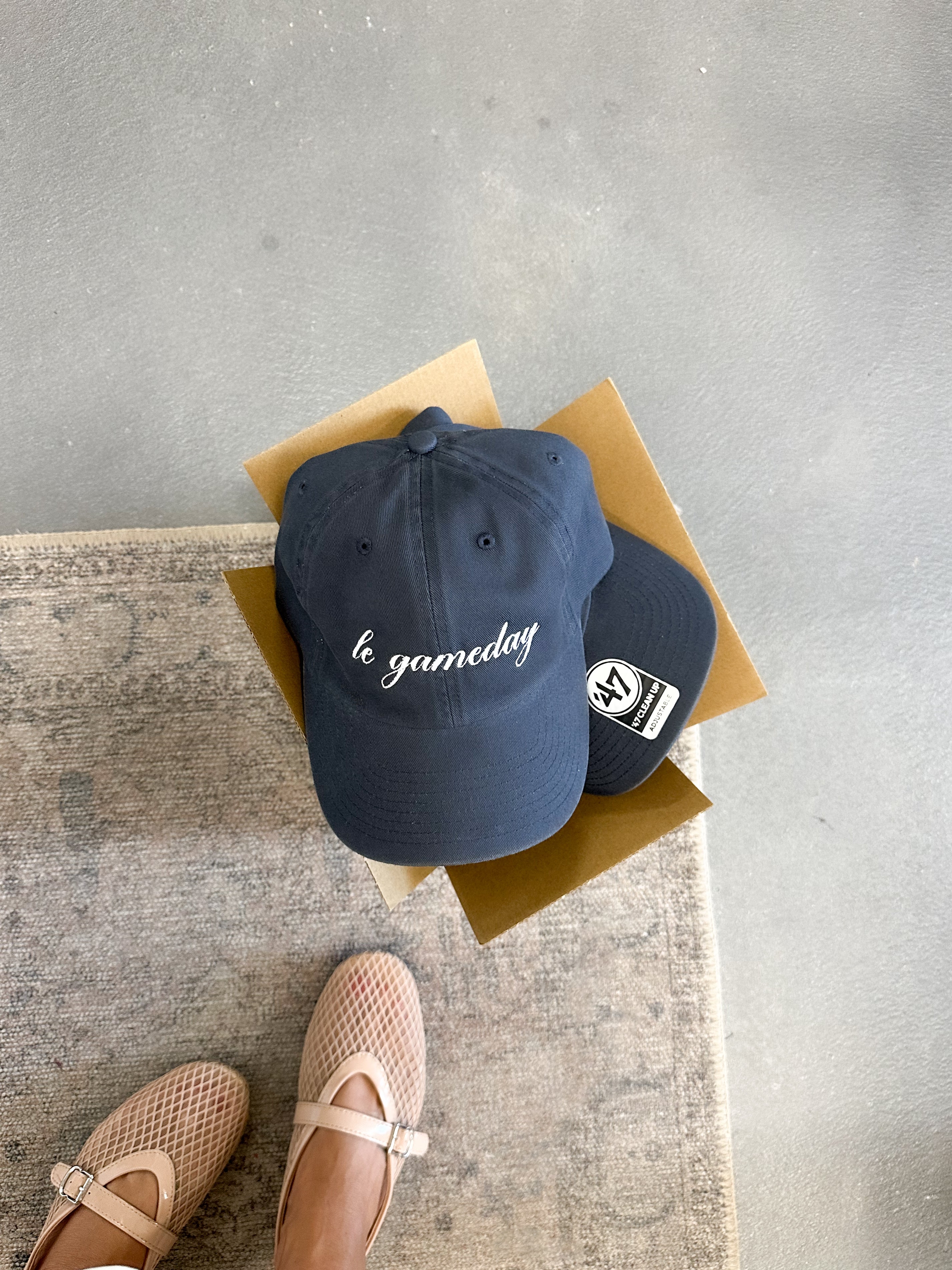 Our Le Gameday Hat is a must have! Navy '47 Brand with white script embroidery. Adjustable. Perfect for everyday!