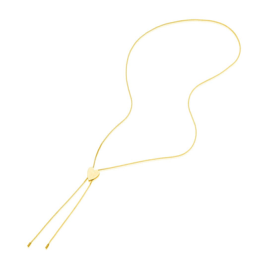 Our Heart Bolo Necklace in gold features 14K Gold Plating non-tarnish chain and heart charm. 30" adjustable chain. Heart slider adjusts length as needed.
