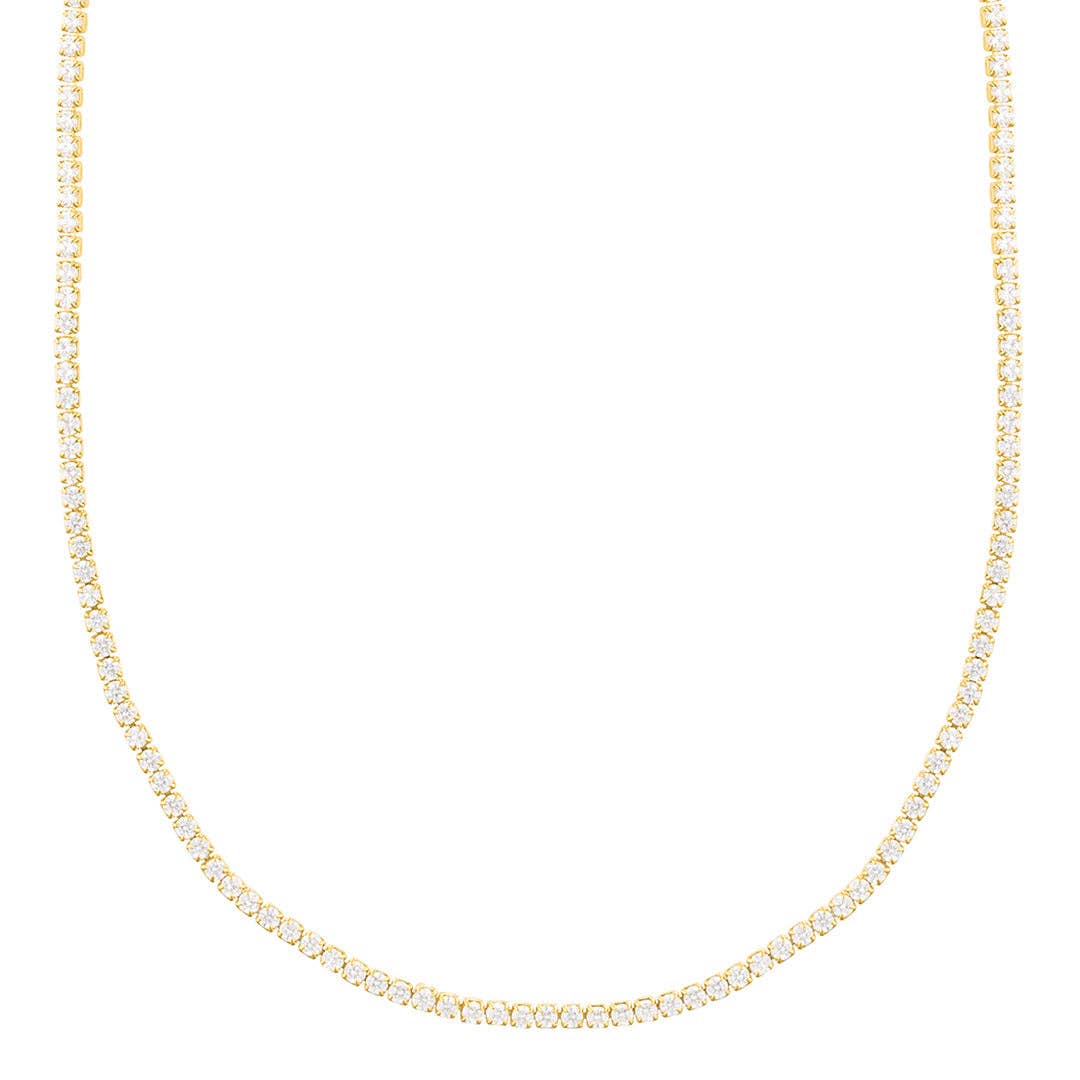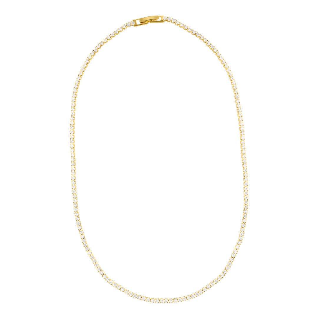 You will just want to live in our Micro Tennis Necklace! This necklace features 14K Gold Plating non-tarnish chain and mini crystal embellishment. 16" Length. Clasp closure.