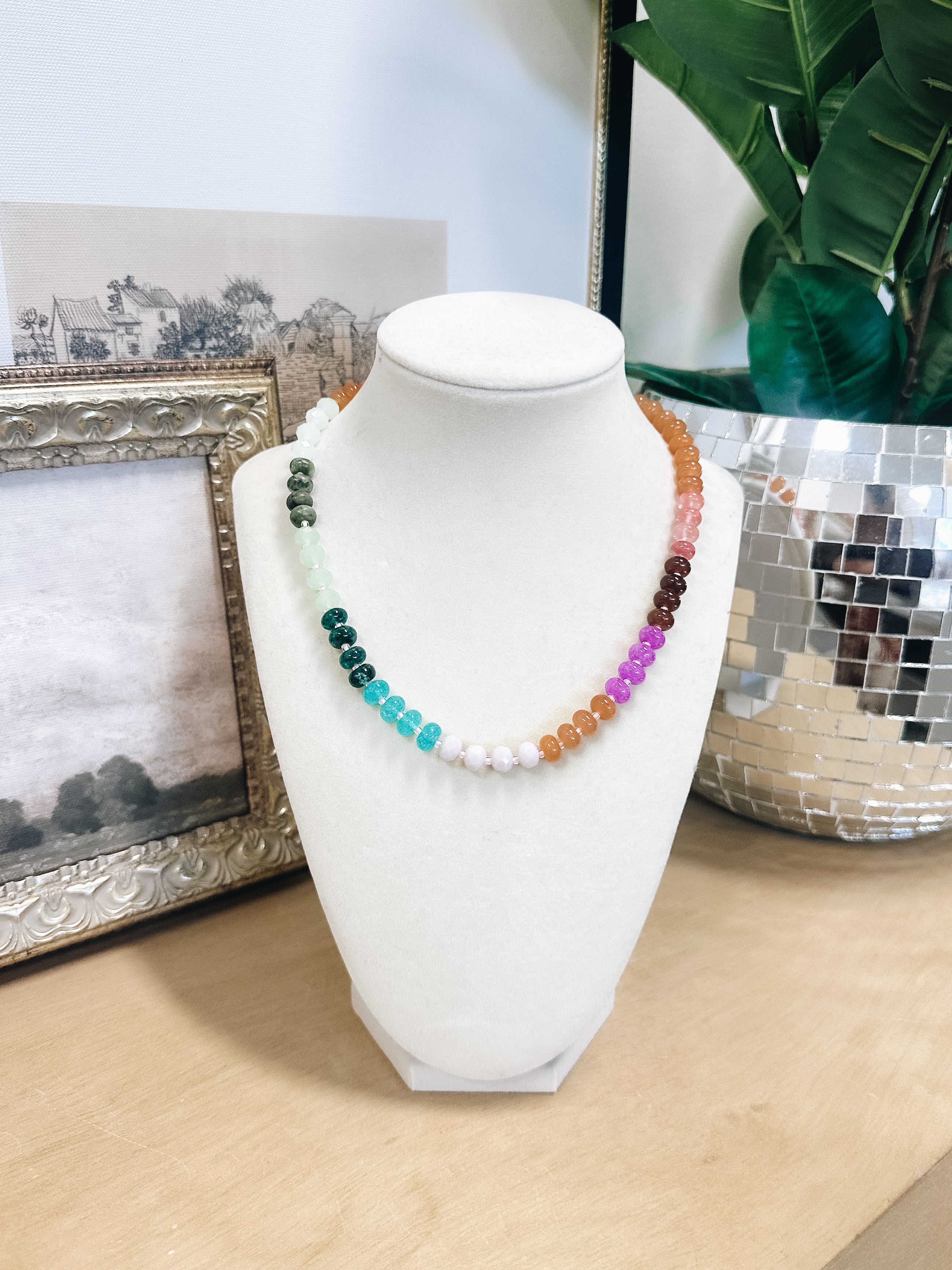Our Multi Color Beaded Necklace is a darling piece! It is so easy to dress up or down! Pair this layered necklace with your best blouse or favorite tee! Natural Agate. Semi Precious. Clasp. 16" drop + 2" Extender