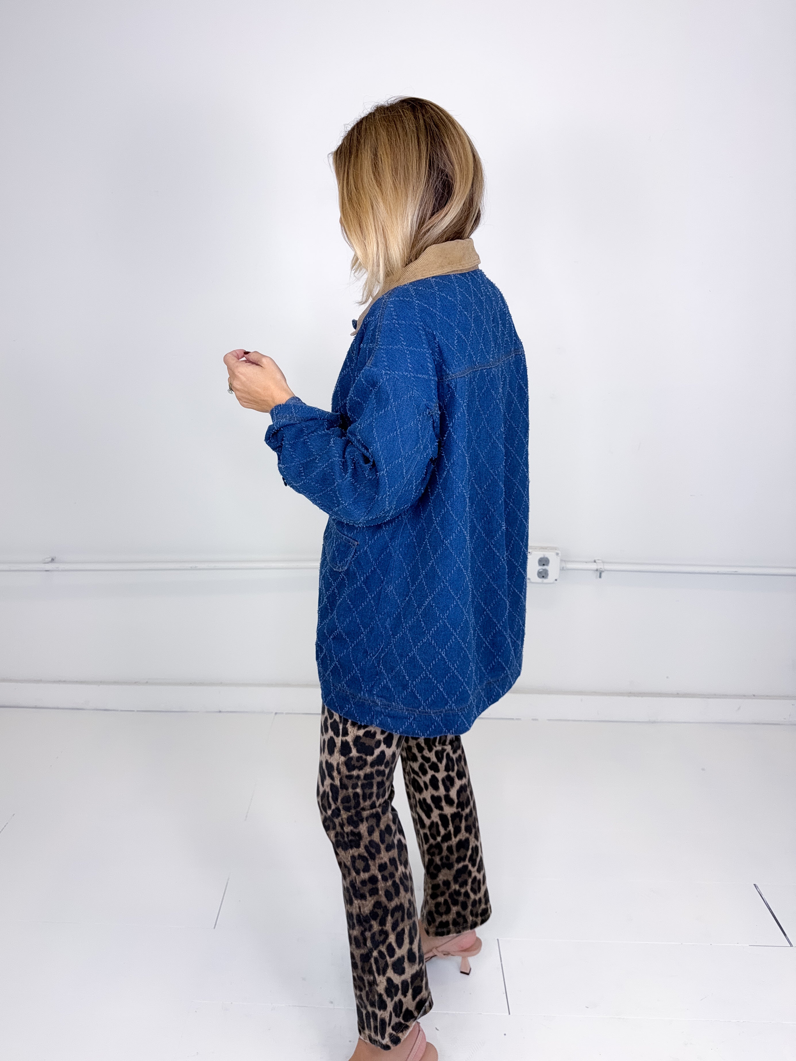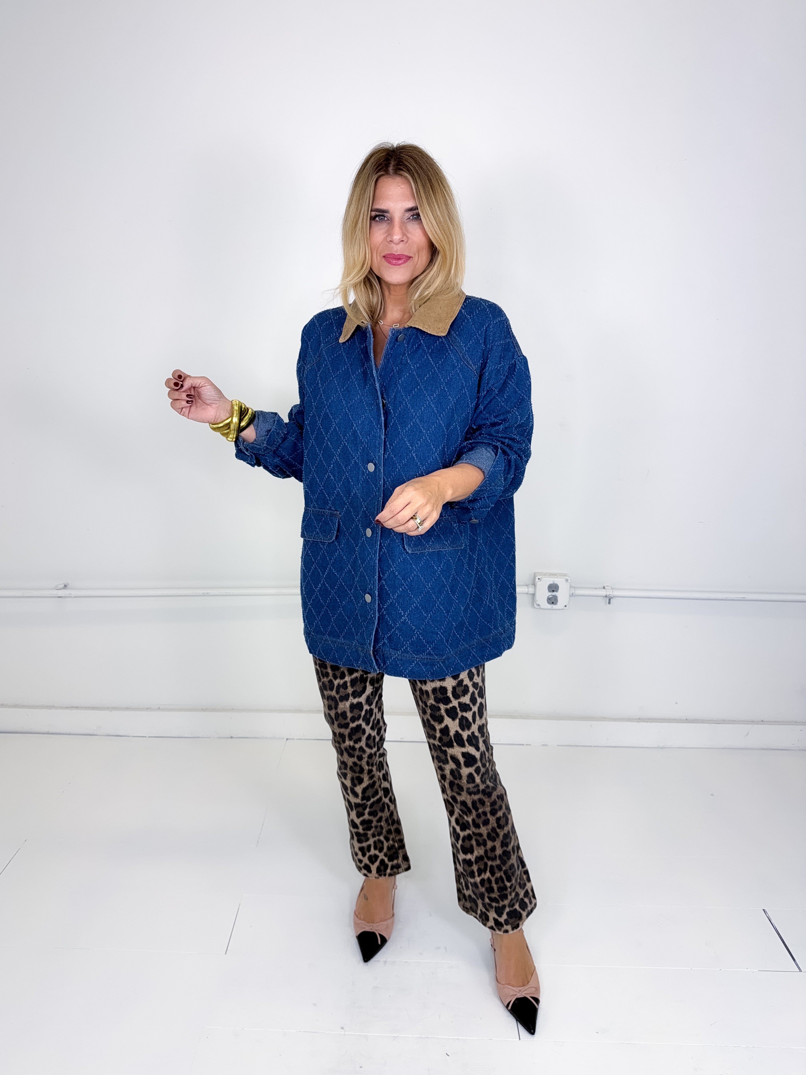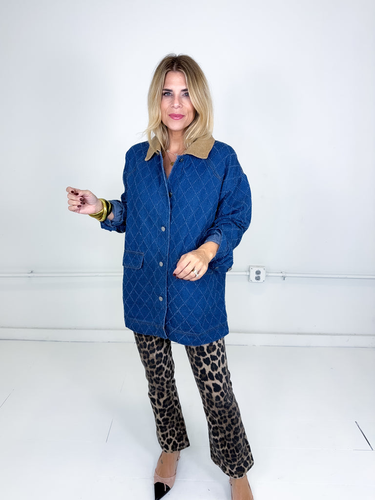 The Halsey Jacket is such an everyday fall staple! This barn style jacket features a textured denim base with a corduroy collar, button front with long sleeves and front facing pockets. Pair with pants, dresses, skirts, and more!