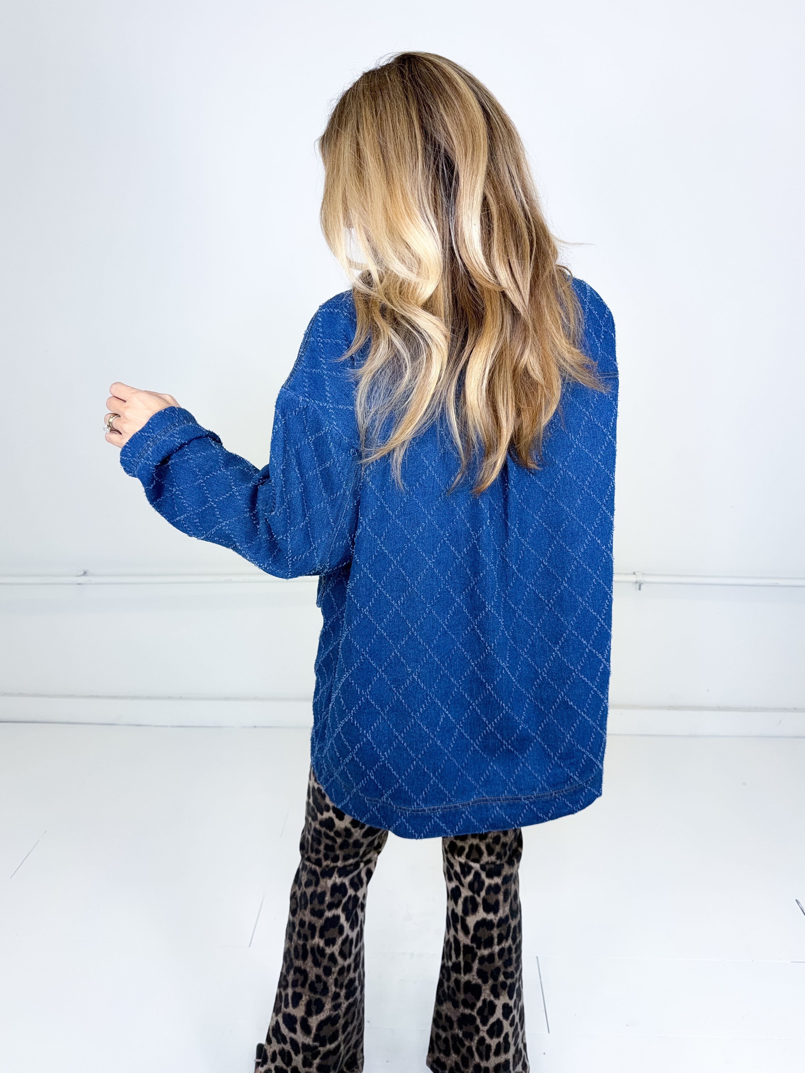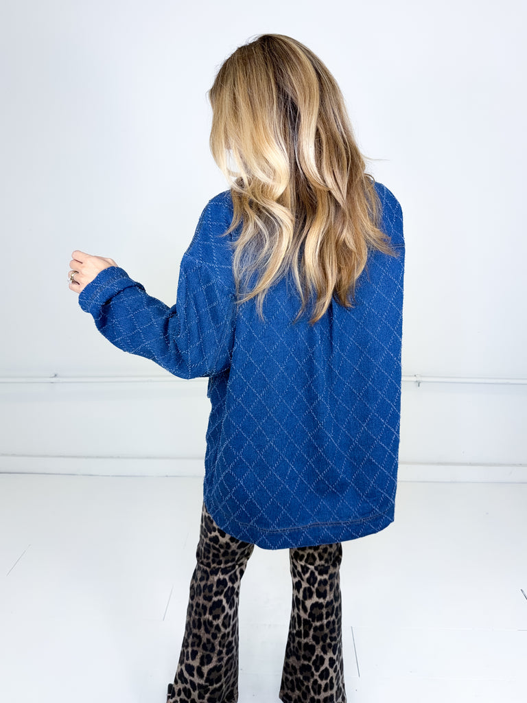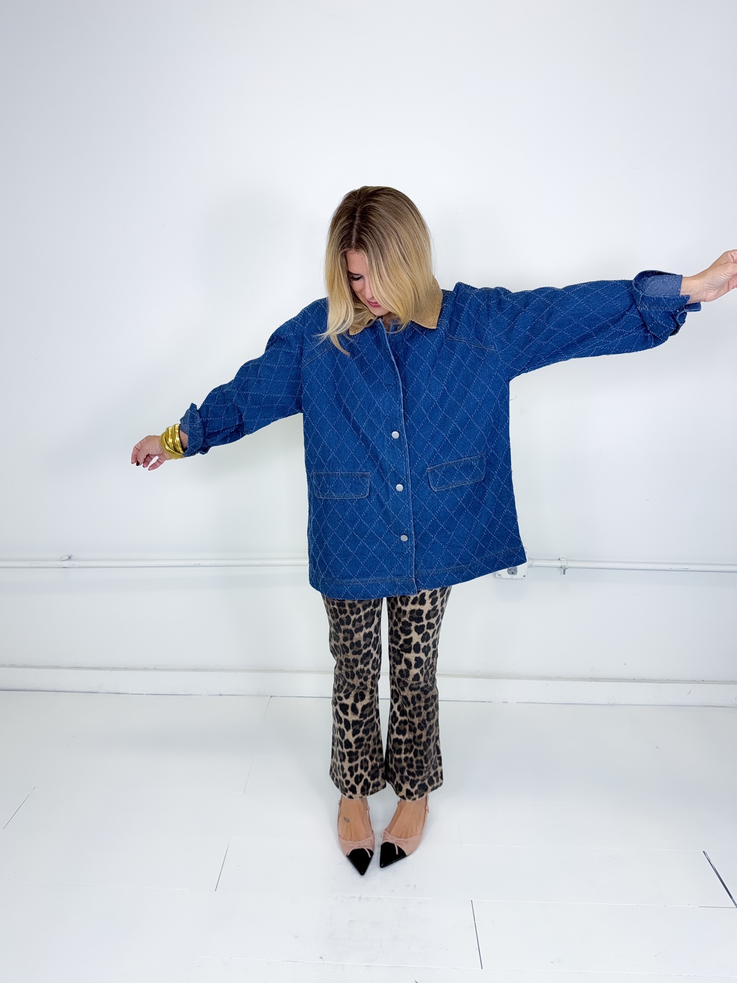 The Halsey Jacket is such an everyday fall staple! This barn style jacket features a textured denim base with a corduroy collar, button front with long sleeves and front facing pockets. Pair with pants, dresses, skirts, and more!