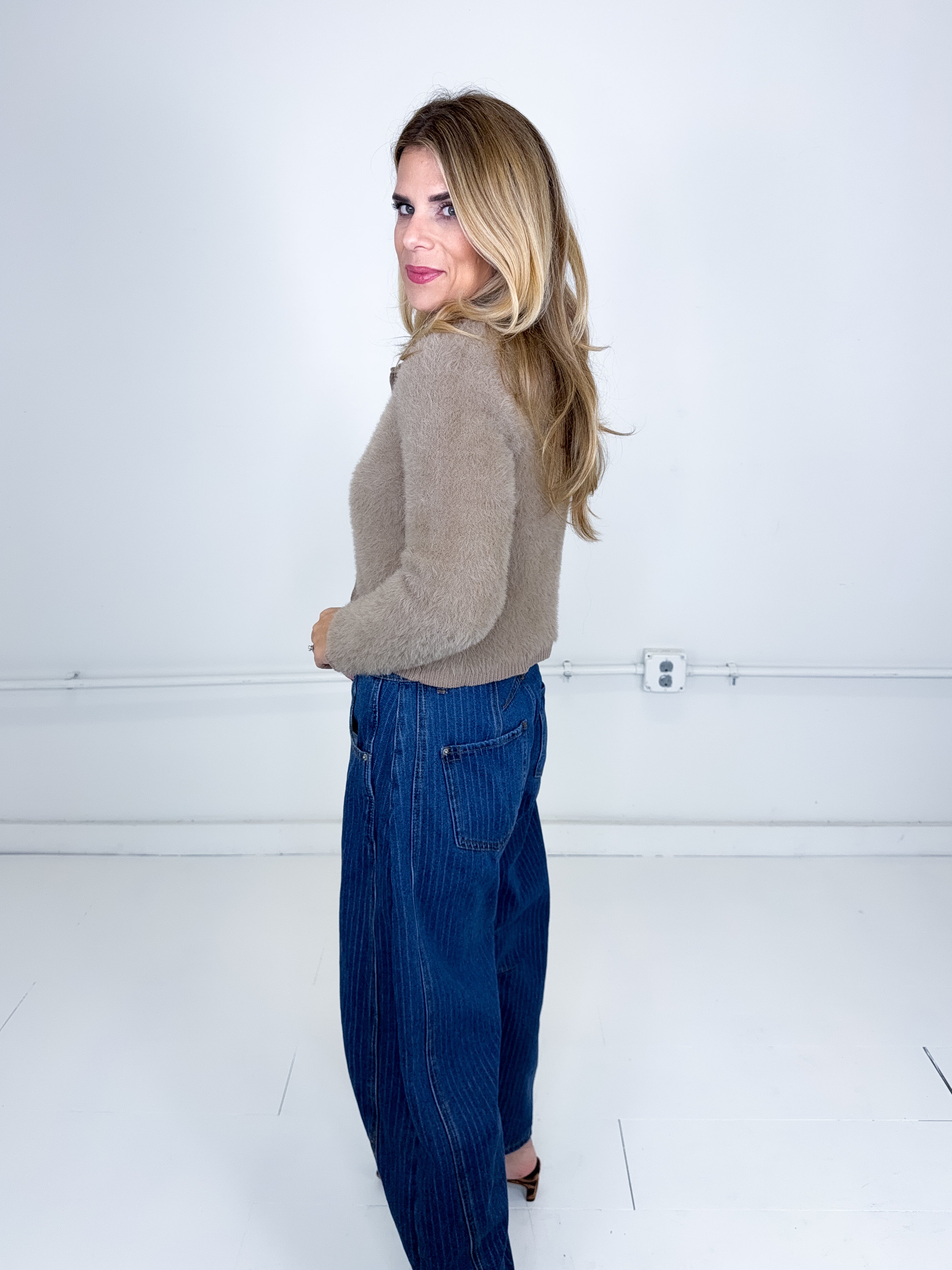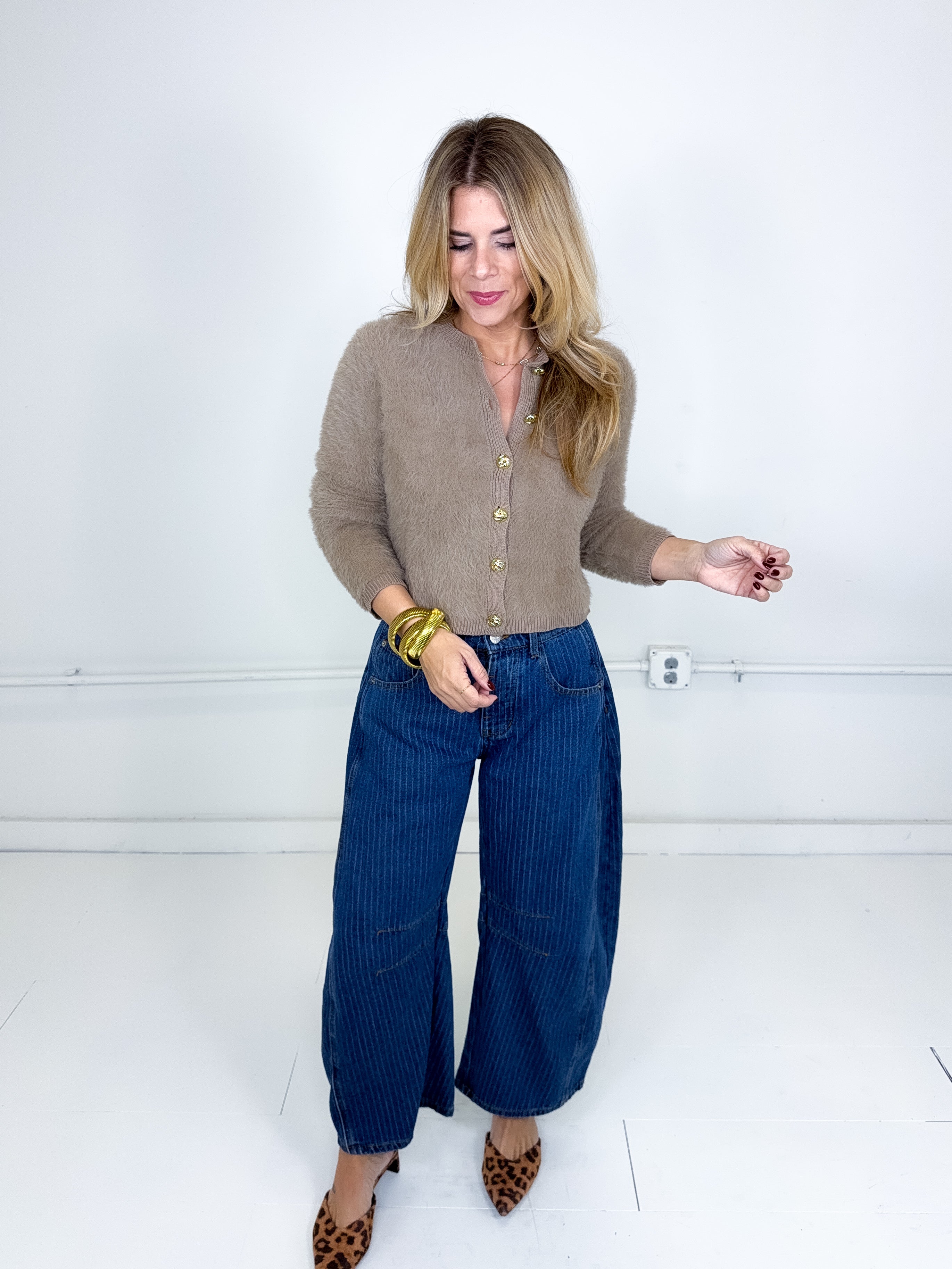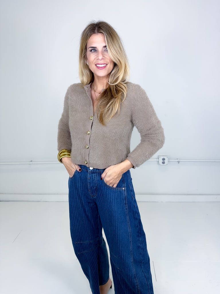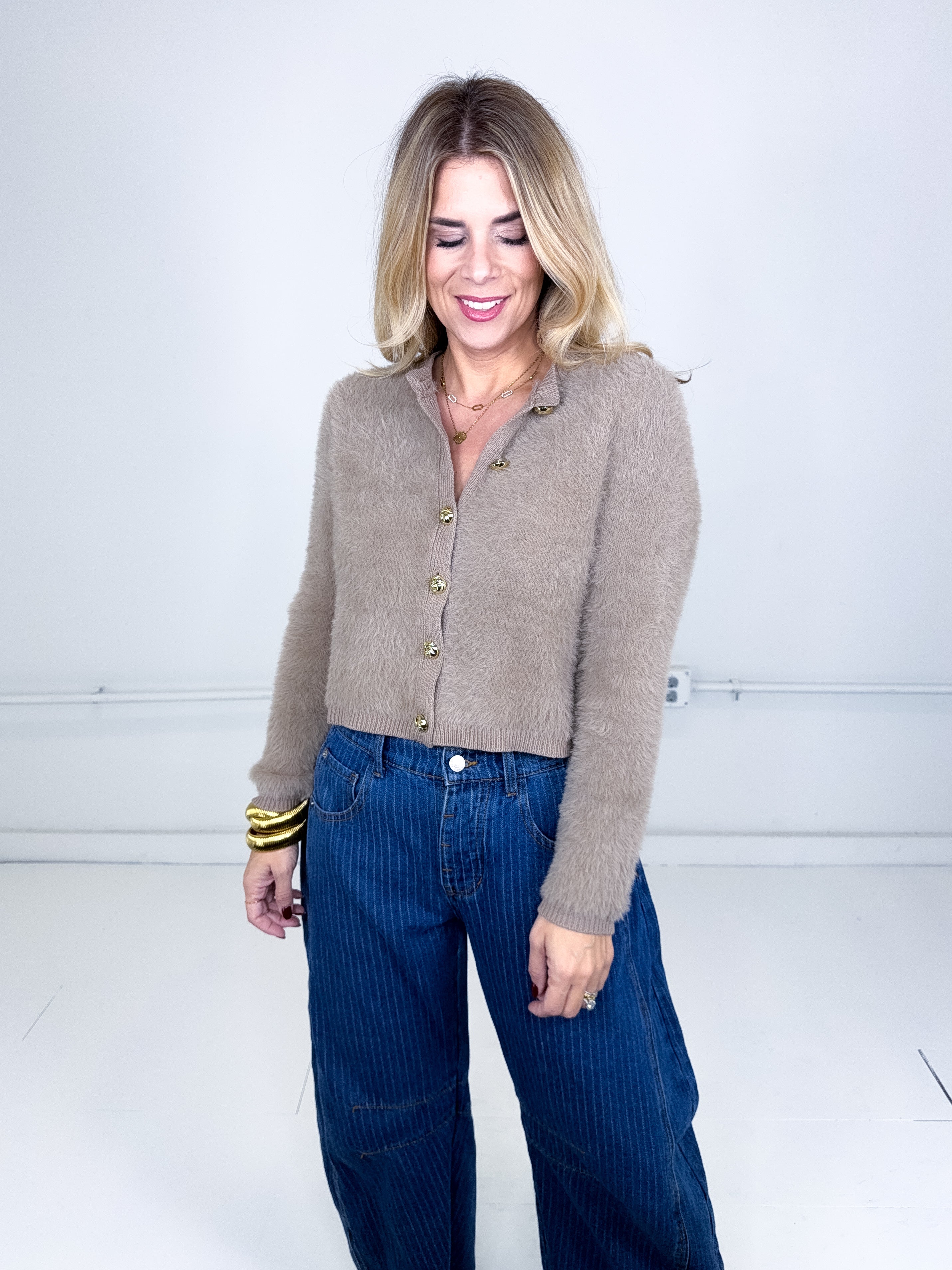The Landry Cardigan will be the one you reach for over and over! This mocha fuzzy knit cardigan features a classic fit, gold buttons, round neckline and a skimmer length. Pairs well with everything from denim, flats, heels, dress pants, boots and more! Fits true to size.