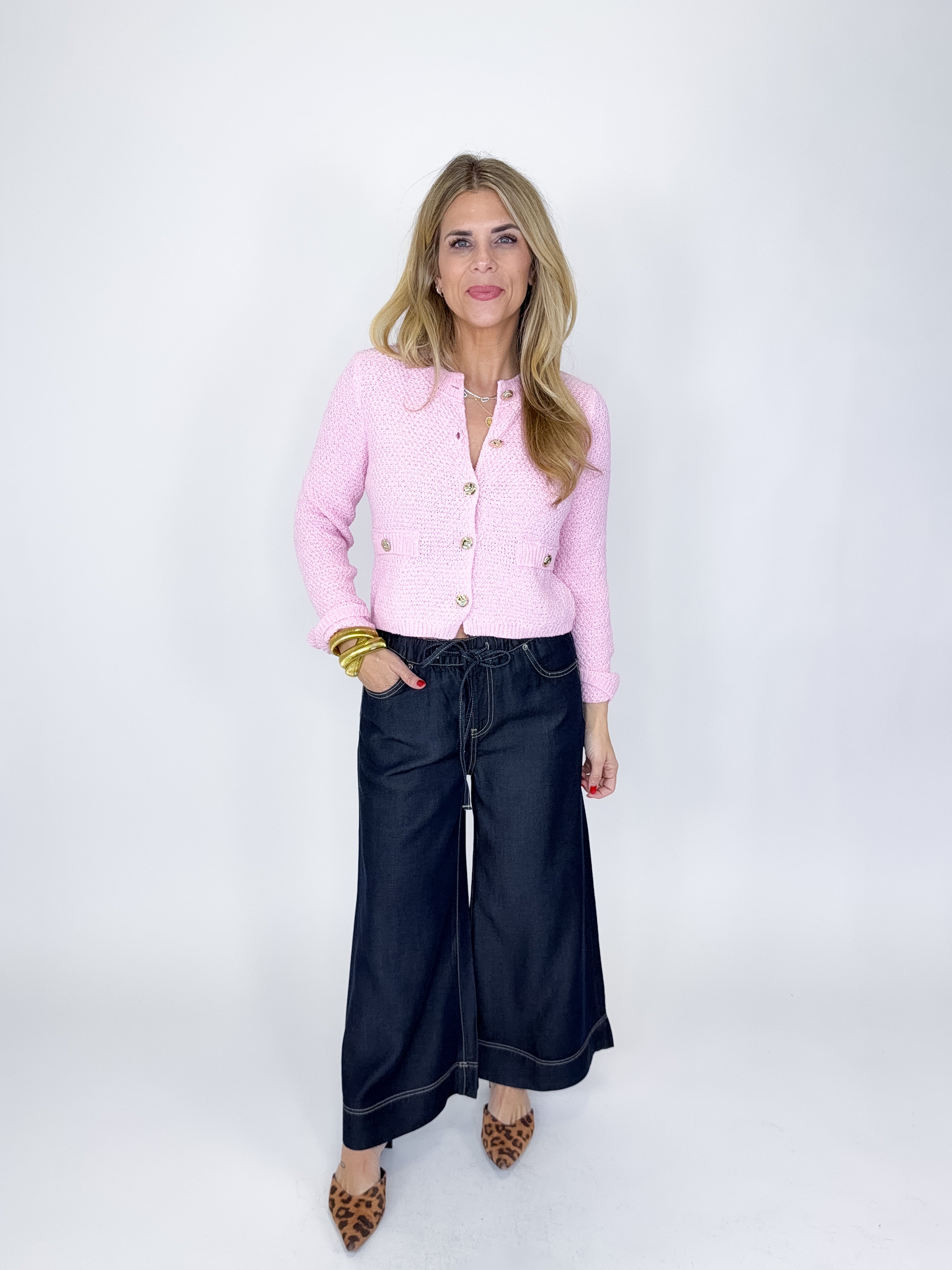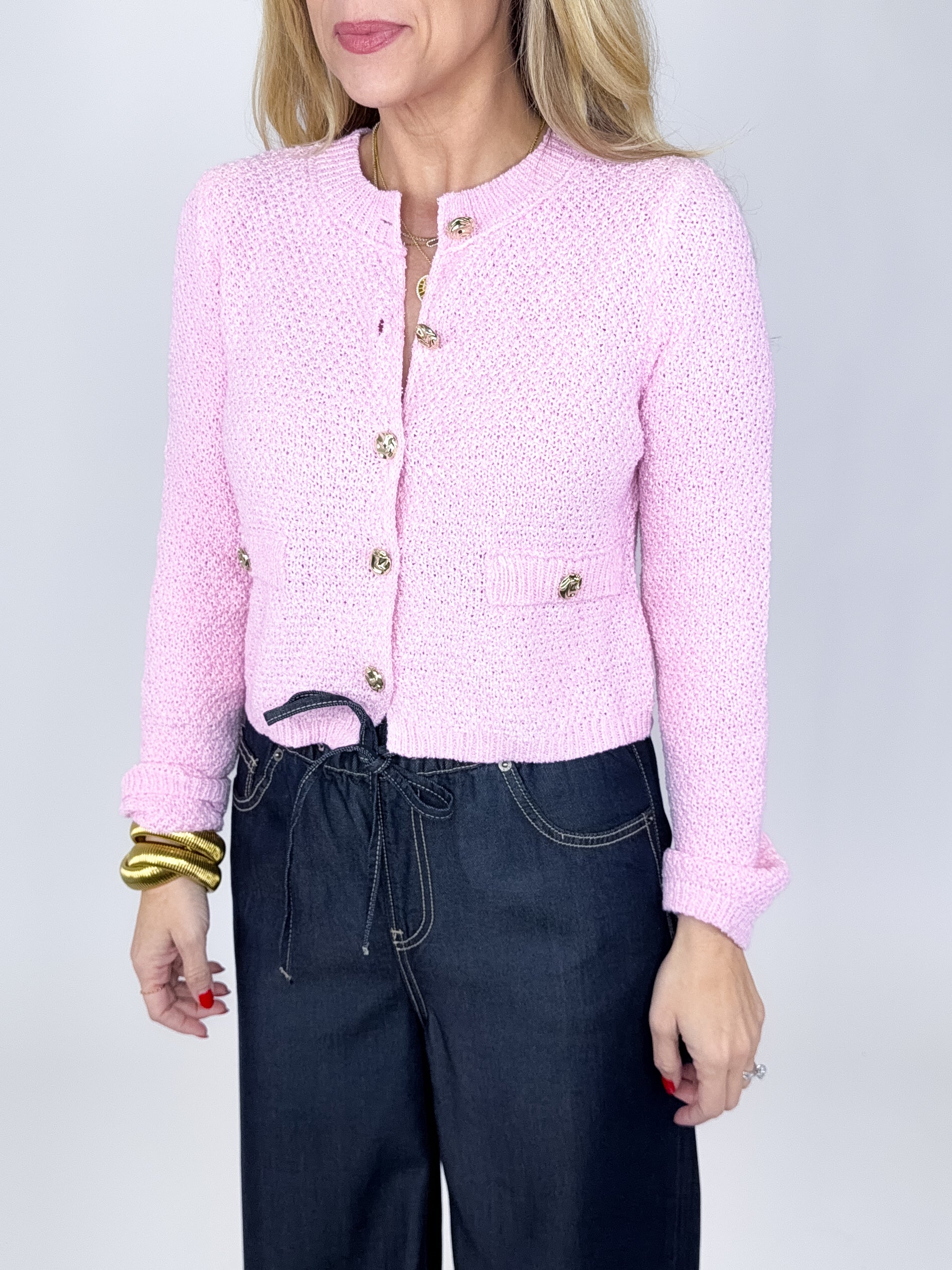 The Rae Cardigan will be the one you reach for over and over! This pink knit cardigan features a classic fit, gold buttons, round neckline, faux front pockets and a skimmer length. Pairs well with everything from denim, flats, heels, dress pants, boots and more! If in between sizes, we recommend sizing up.