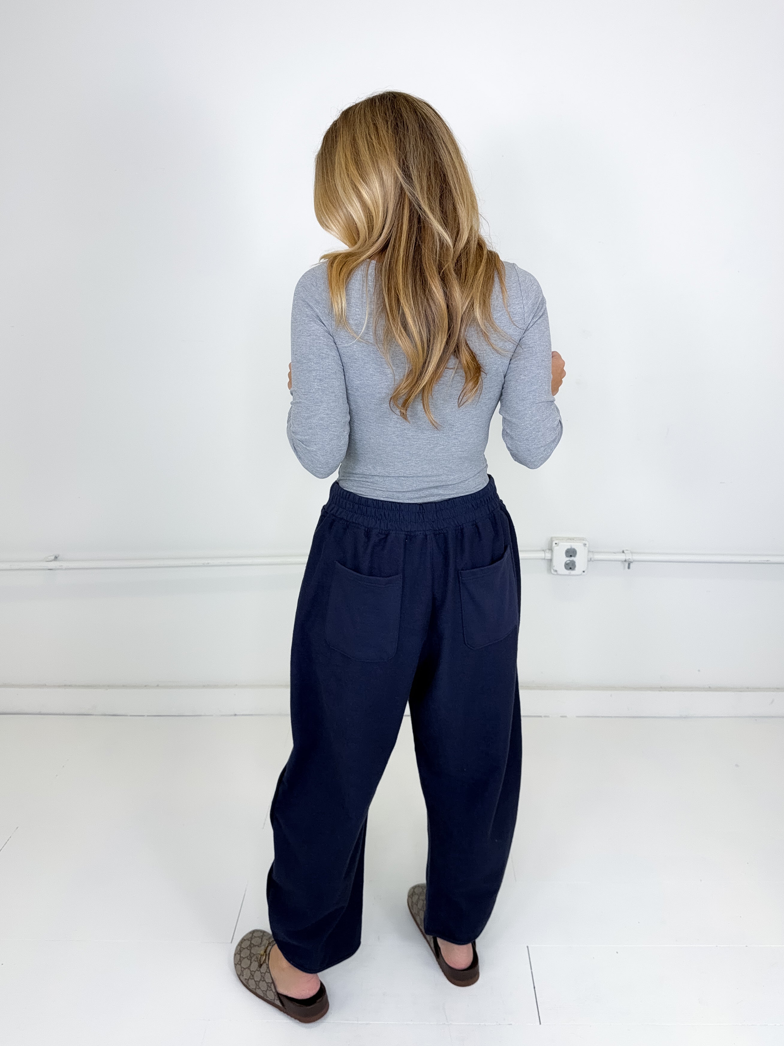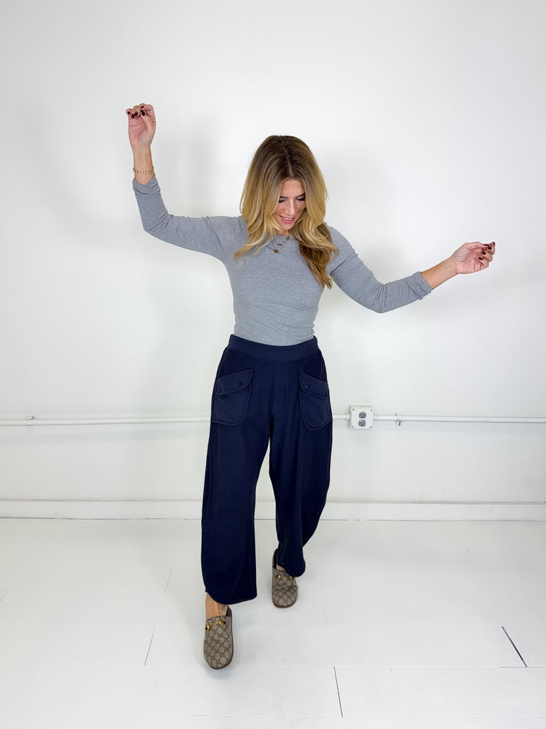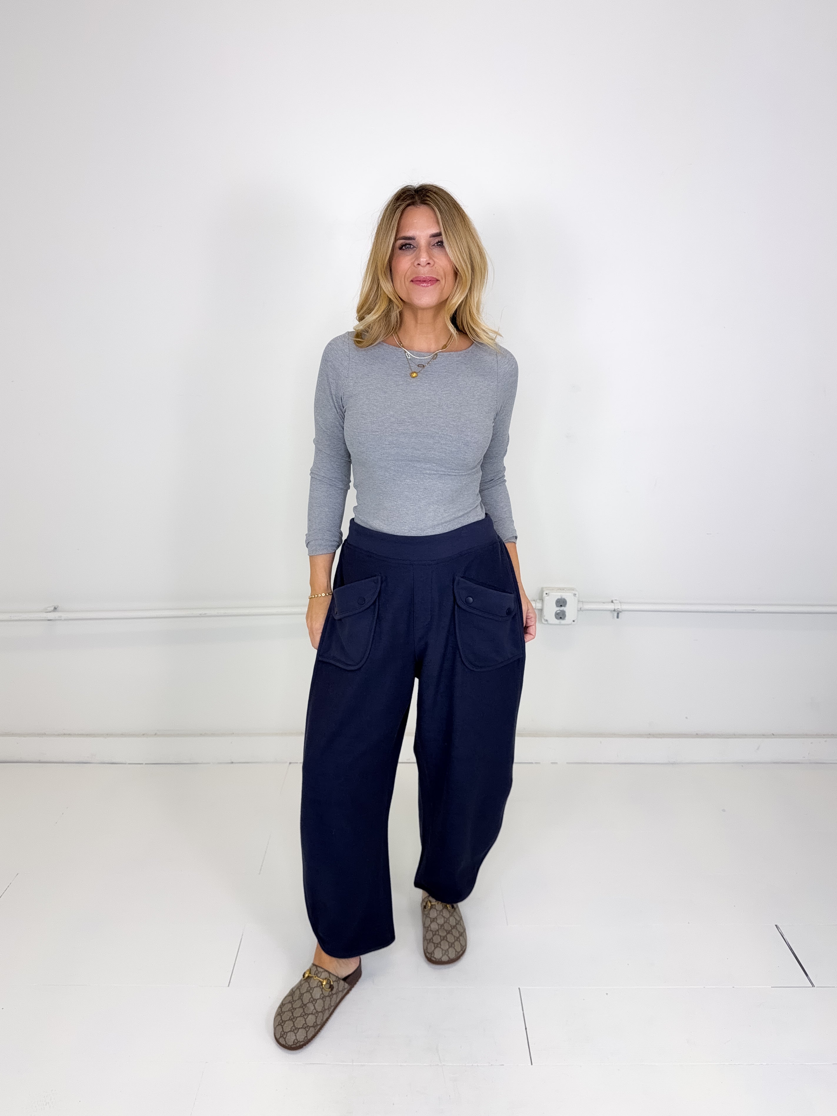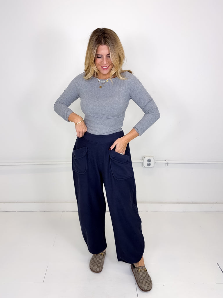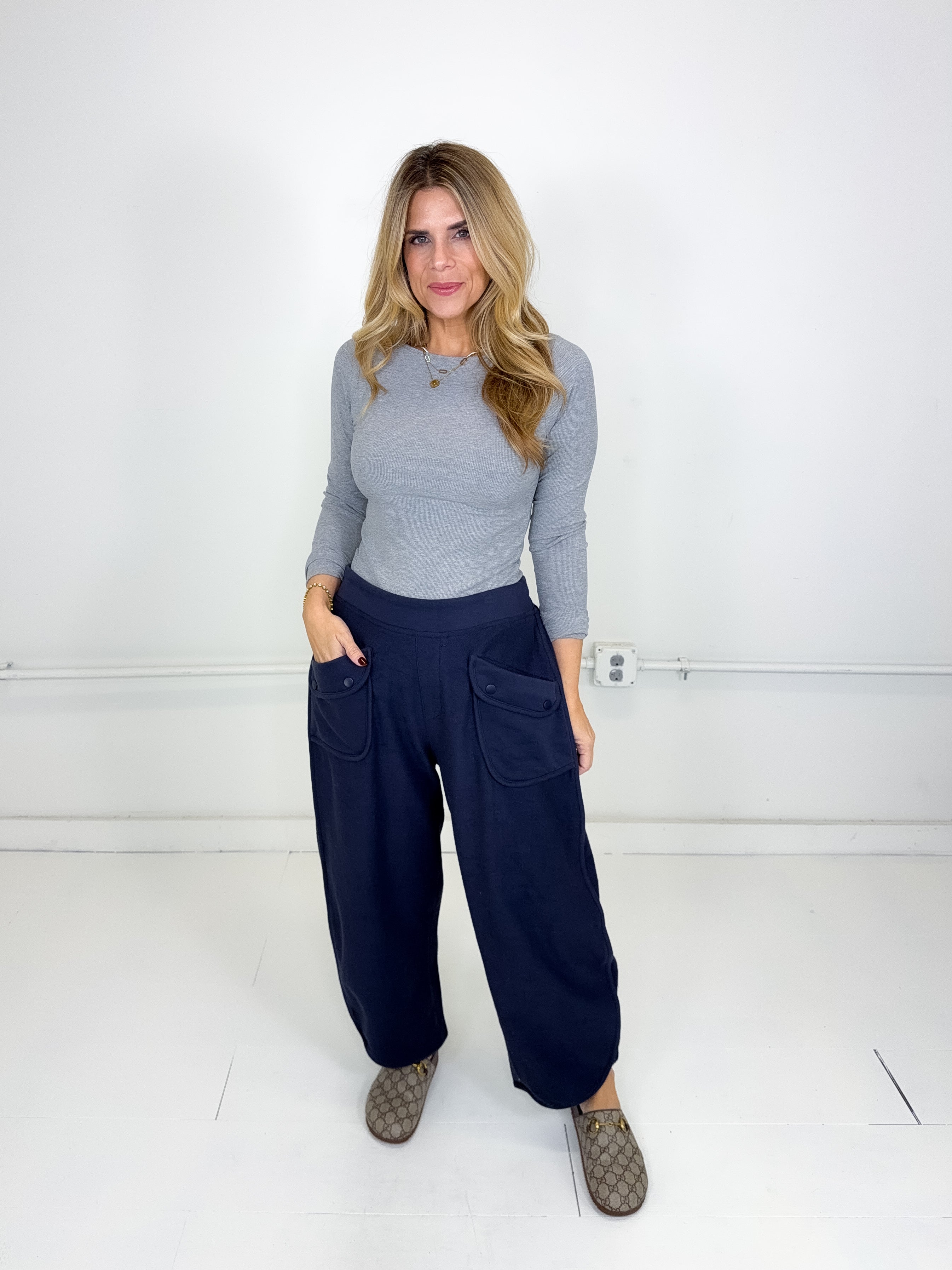 Our Ray Pants are a lightweight knit pant. They feature a high elastic waist, large front button pockets and an ankle length U shaped hemline. Style with everything from your favorite tee and sneakers to a vest or sweatshirt.