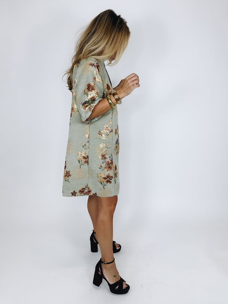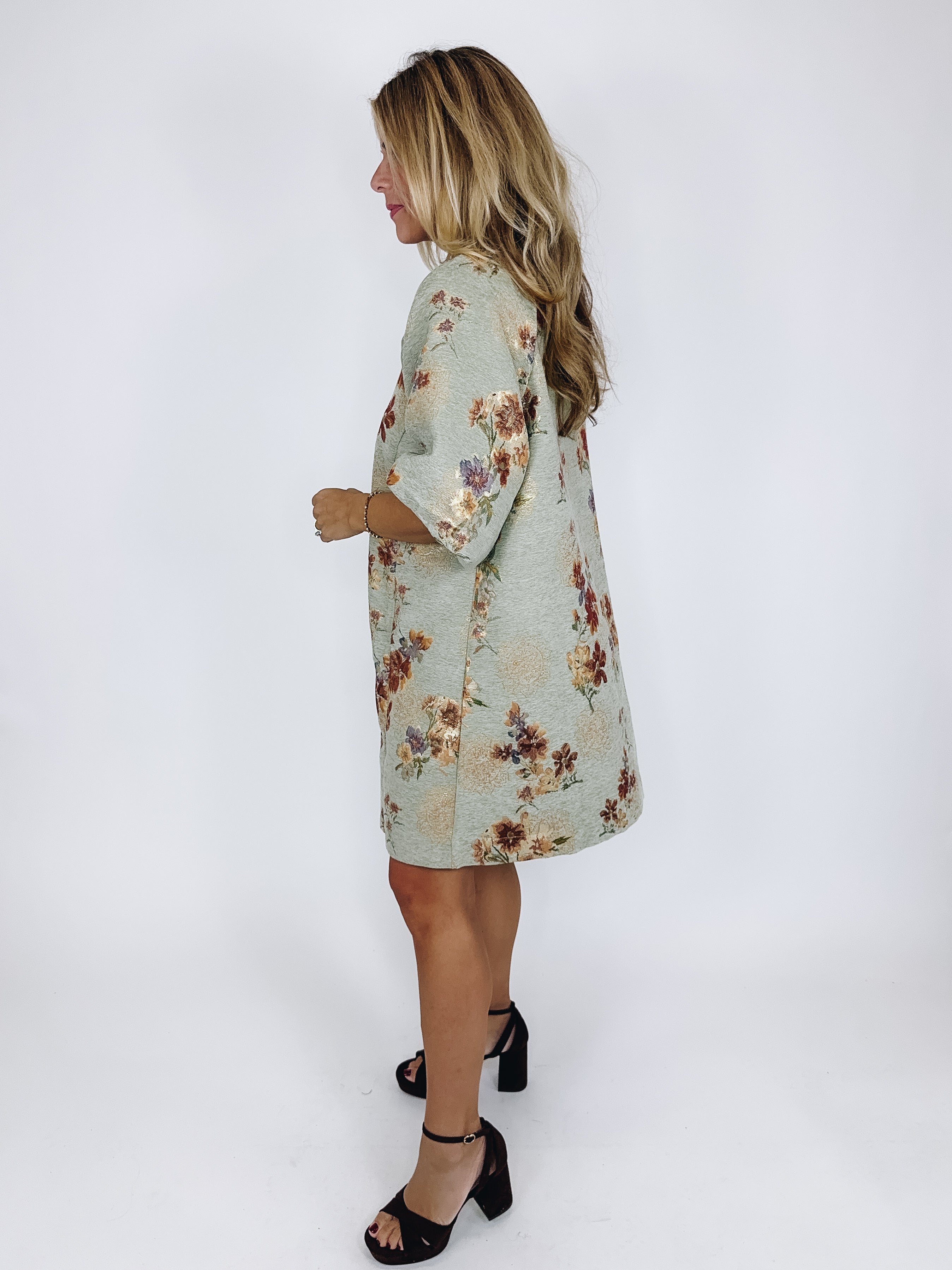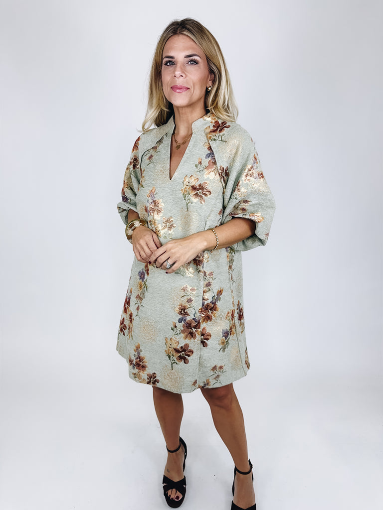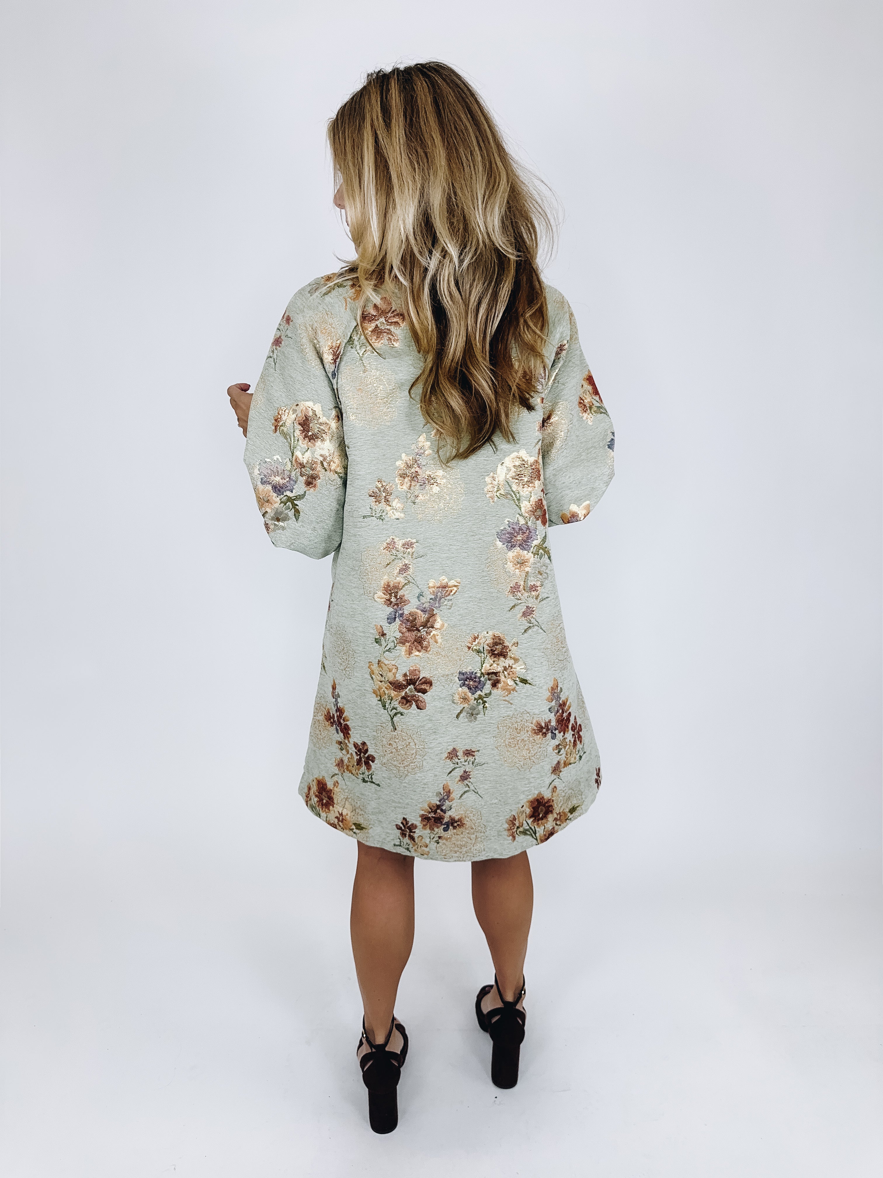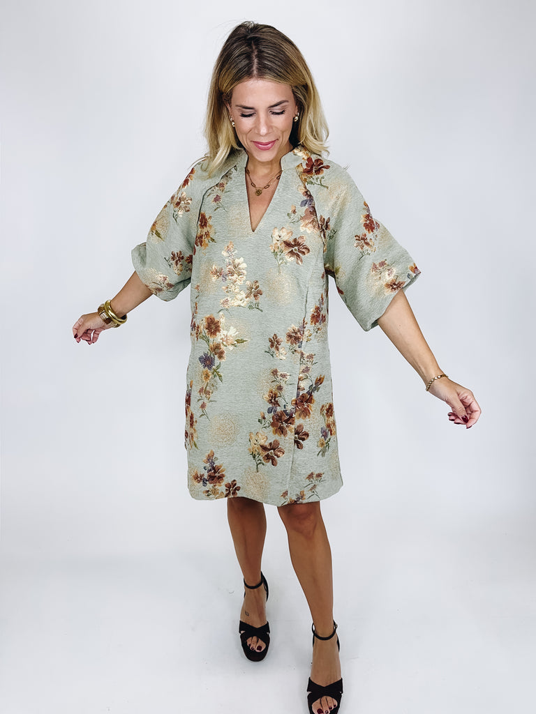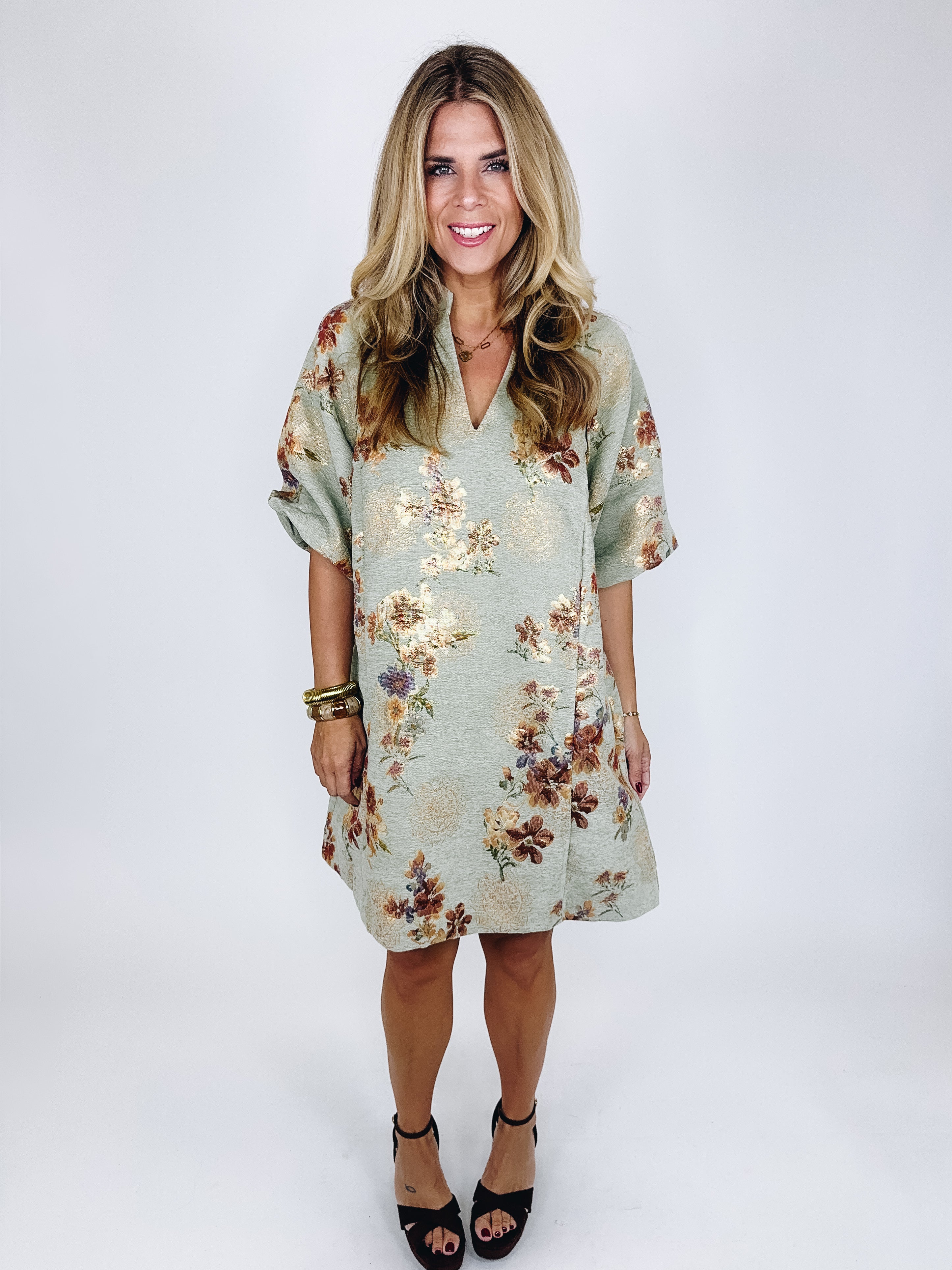 The Rowen Dress is a show stopper! This sage green mini dress features a floral embroidered print, short balloon sleeves and a v-neck. Style with flats, heels, wedges, boots, sandals and even sneakers! Dress up or down. Lined. Fits true to size.