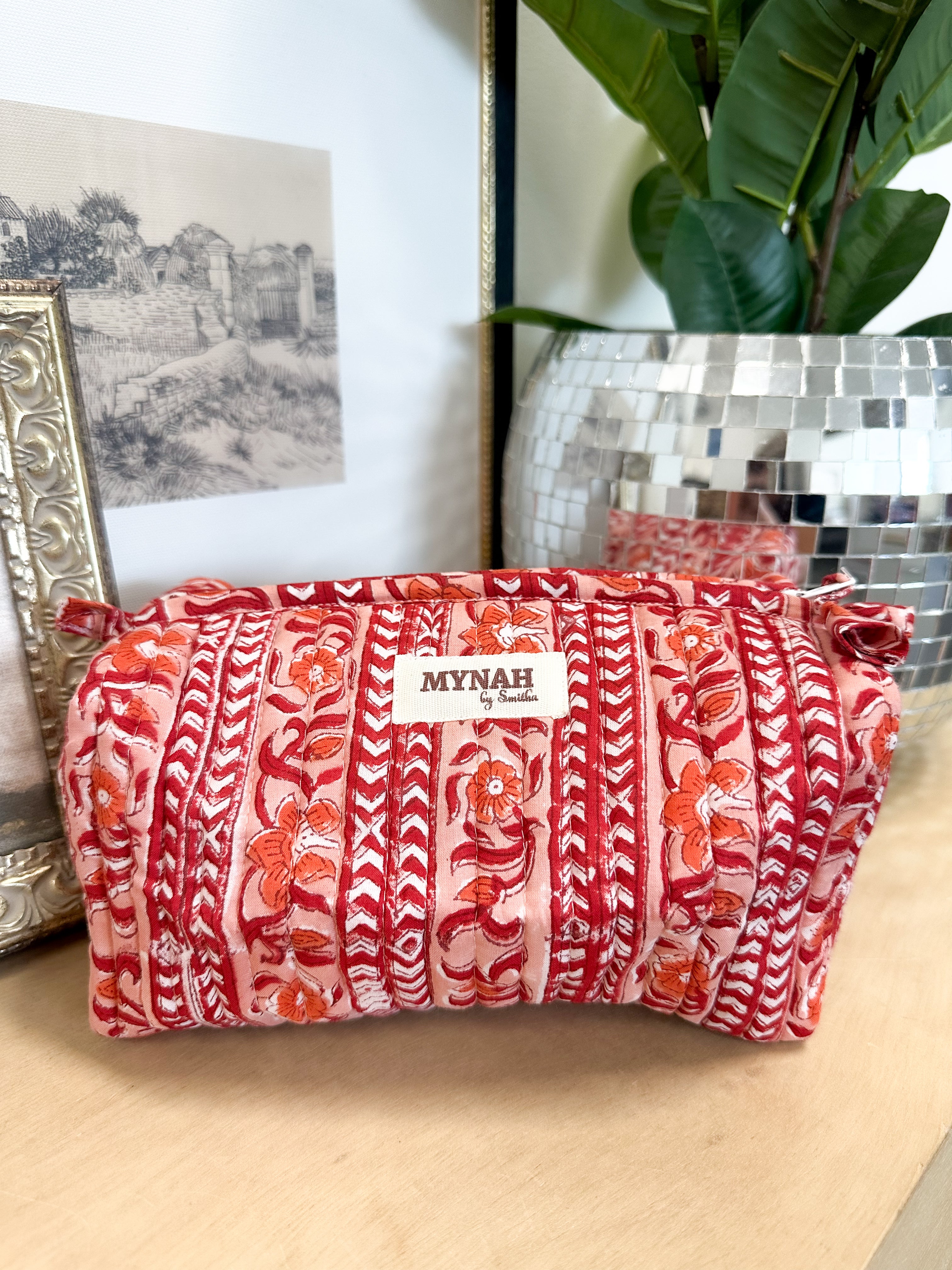Our Terracotta Stripes Quilted Pouf is perfect for storing makeup, stashing everyday essentials in a large tote bag or just a safe place for all your must haves! Machine washable and tumble dry. Gets softer with every wash! Zipper closure. Waterproof liner. 8”x 4”x4” This style is available in 3 sizes; small, medium and large.